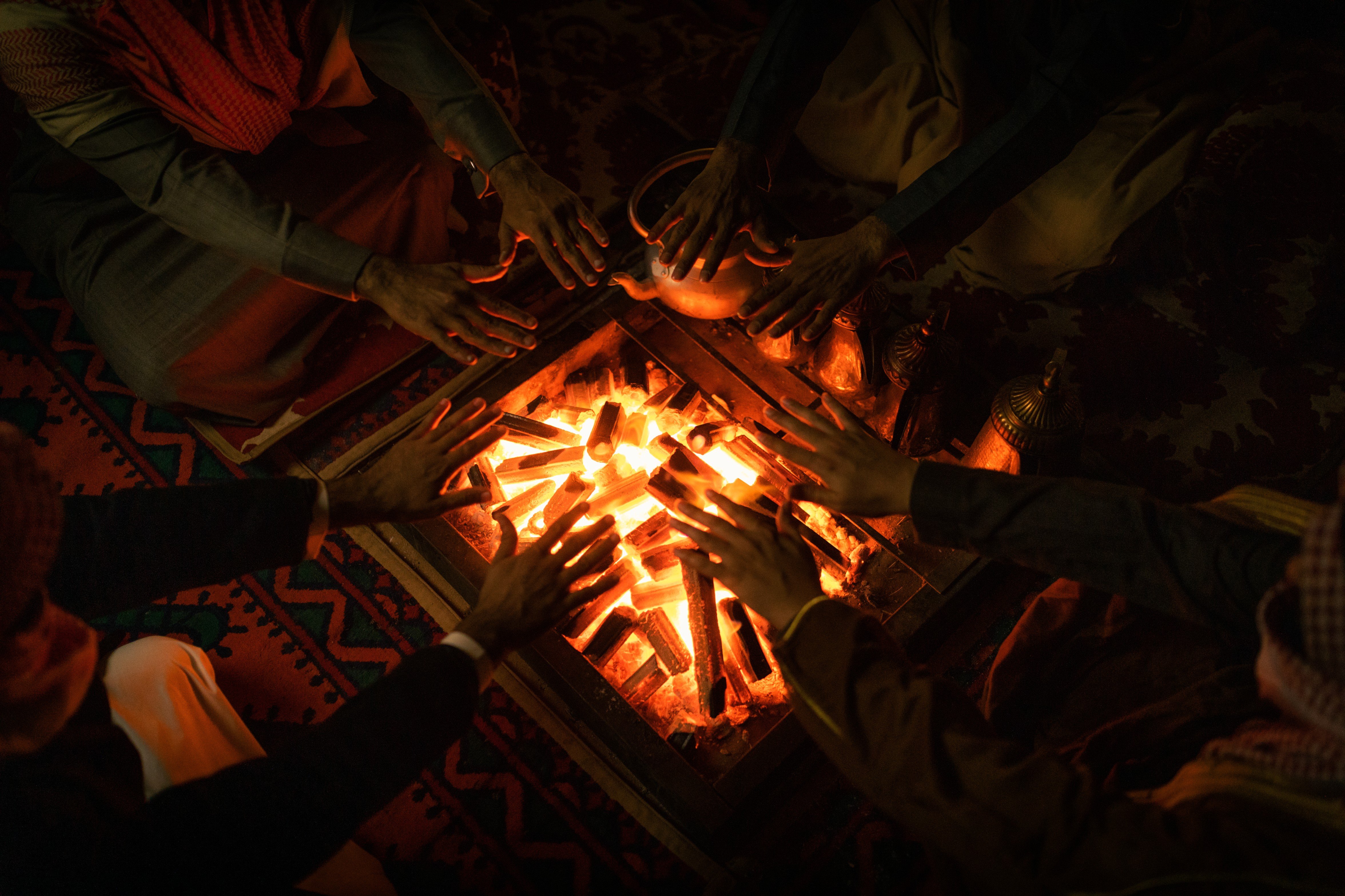 2. نار قوية وجمر صافي: بمجرد اشتعاله، ينتج حطب القرض لهباً قوياً وحرارة عالية. والأهم، أنه يتحول إلى "جمر قوي وصافي" يدوم طويلاً، وهو مثالي ليس فقط للدفايات والمشبات، بل أيضاً لترك "الدلال" (أباريق القهوة والشاي) عليه لساعات.
