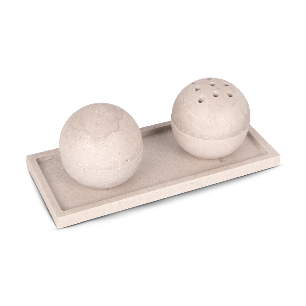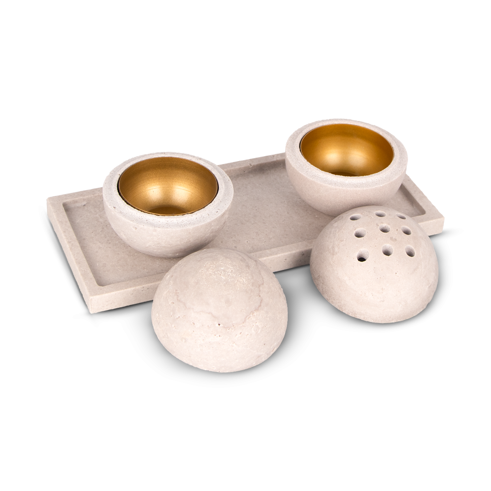 مبخرة عبير بتصميمها الرمادي من الترافرتين تضيف هدوء وأناقة للمكان. الطقم مصمم بجودة عالية يناسب البيت العصري أو المجالس التقليدية.