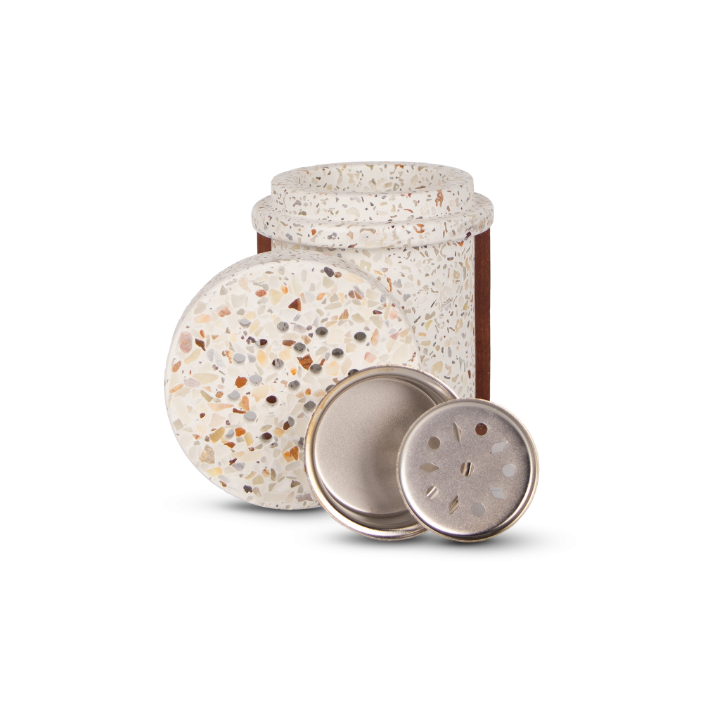 مبخرة أمل من التيرازو الكريمي تتميز بتصميم عملي وأنيق في نفس الوقت. غطاؤها الدائري يحافظ على انسيابية استخدام البخور ويضيف لمسة راقية على الطاولة أو الرف.